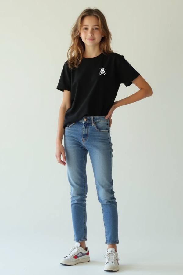 חולצת טריקו בנות צווארון עגול (עם הדפס סמל בית הספר)